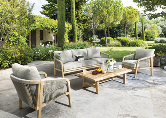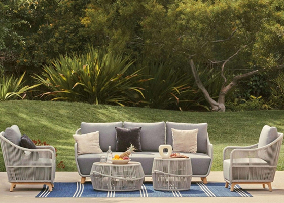 Mori Wooden Outdoor Furniture Set with Rope Design; 7.5'' Thick Cushions; 4-7 Seats