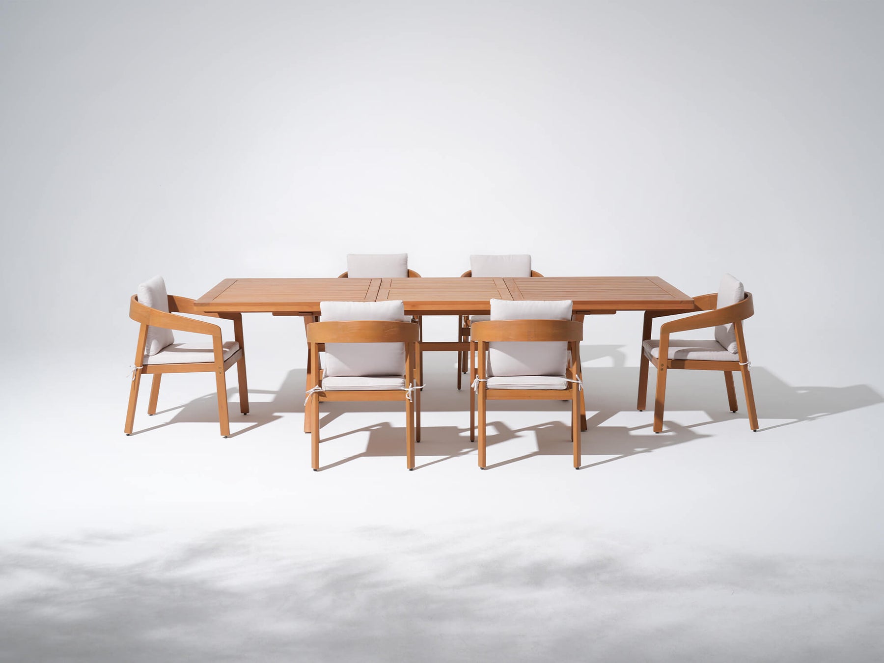 9pcs Eucalyptus Wooden dining table with six matching chairs  - SUNSITT’s Modern Premium Outdoor Furniture