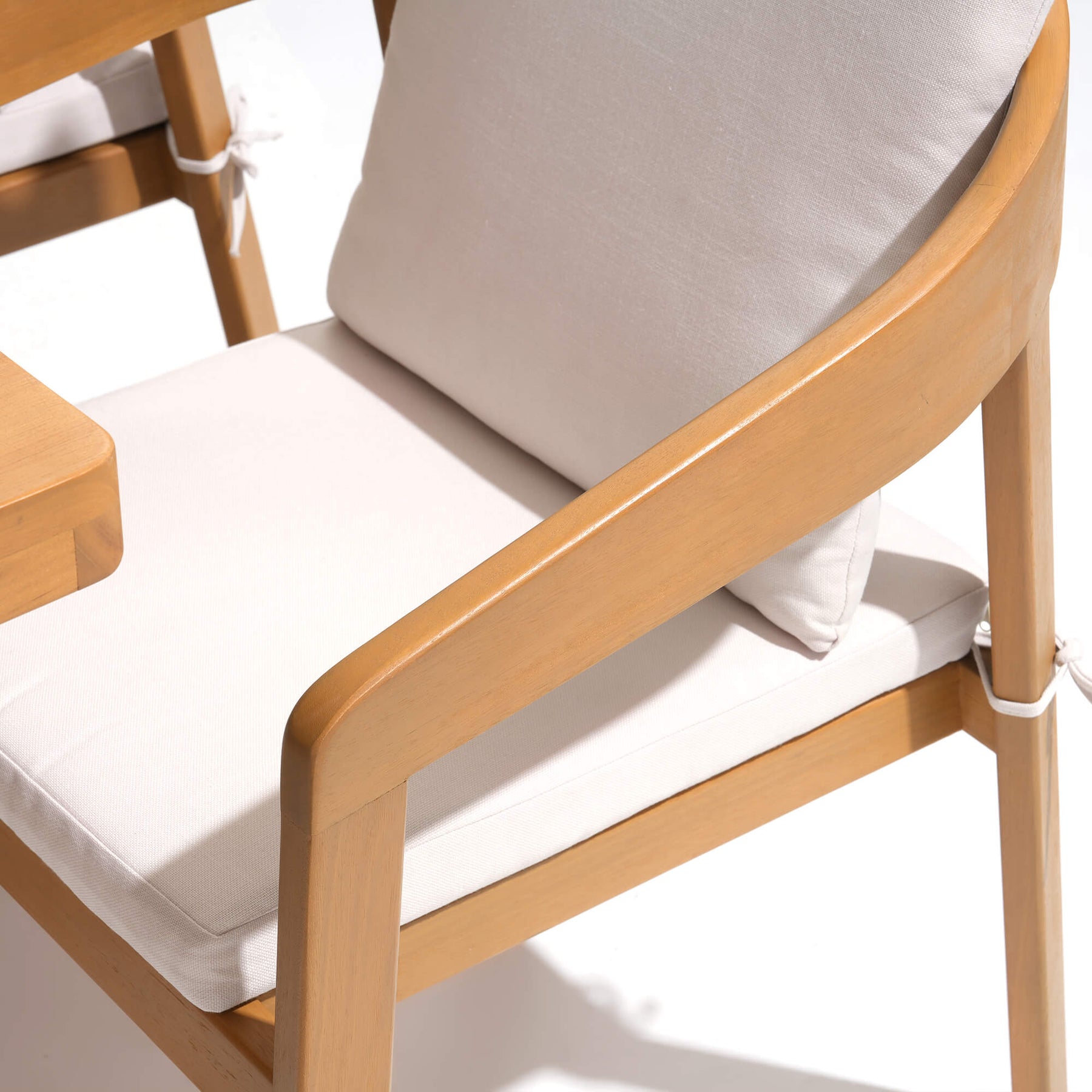 Stackable wooden chairs with white cushions  - SUNSITT’s Modern Premium Outdoor Furniture