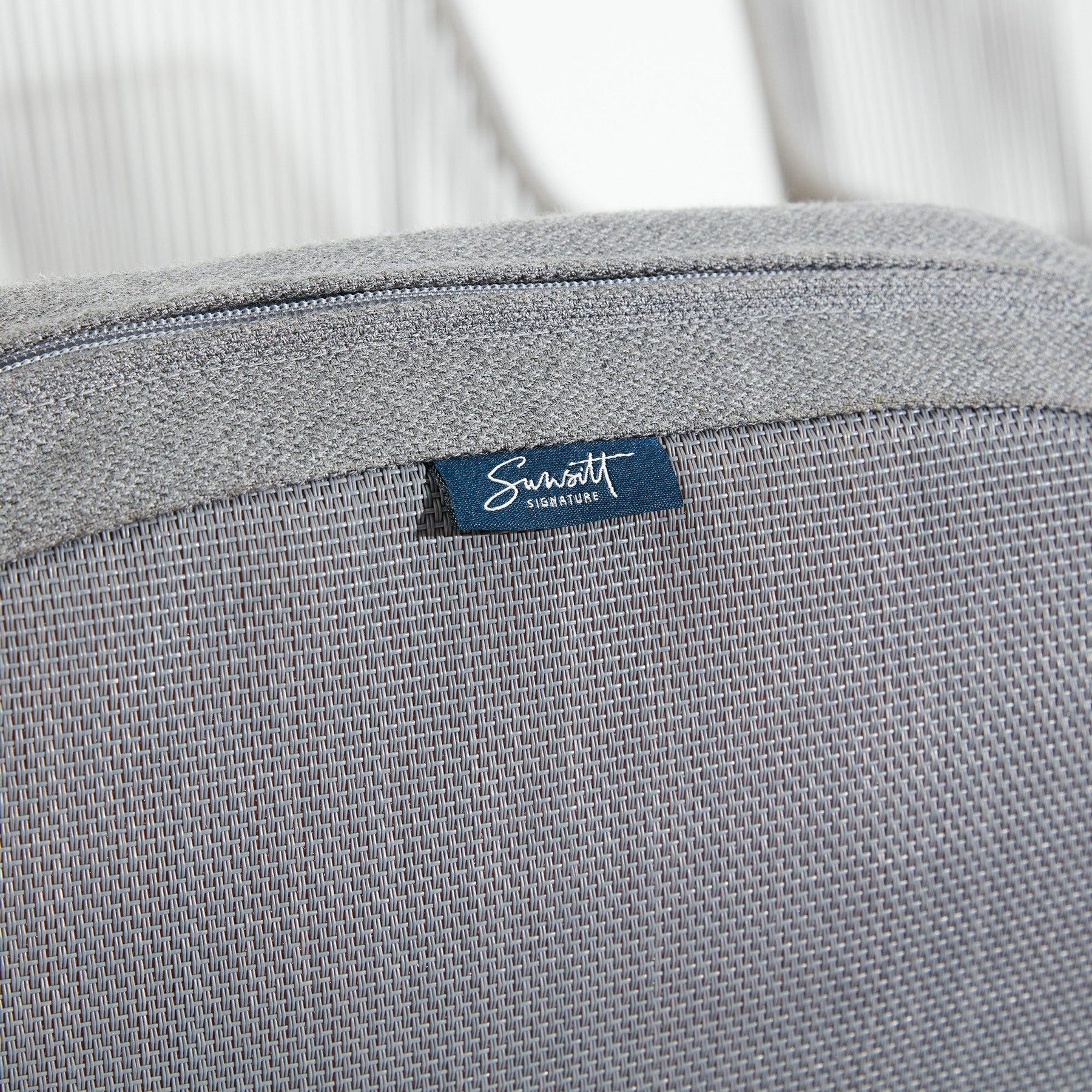 The Plena Dining Chair is an artform rich with color—from its natural brown teak legs to its spectrum of grey rope accents and plush cushion. An outdoor dining chair that's as comfortable indoors as out, is perfectly crafted to hug your back and position your arms comfortably. Its four-layered cushion with special blend of luxurious acrylic fabric is as hardworking as it is lush—resistant to stains, wear and tear, and years of dinner parties.