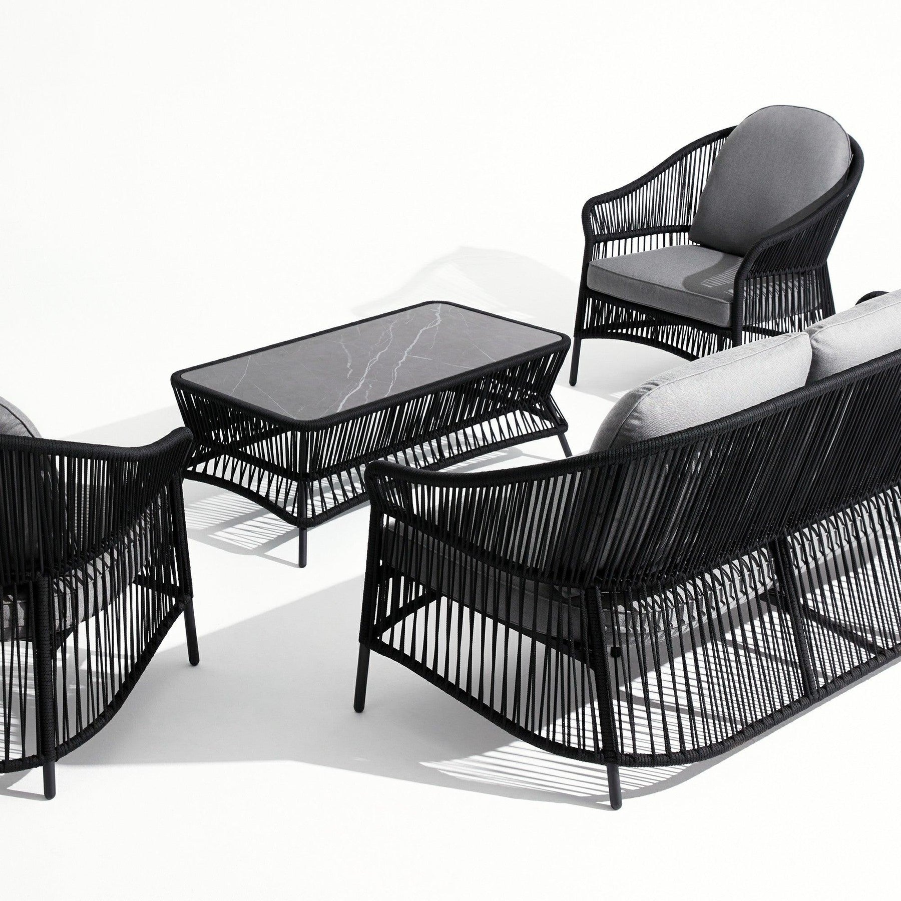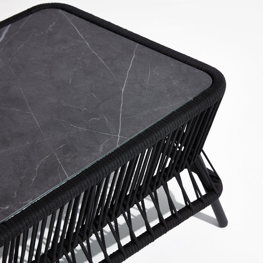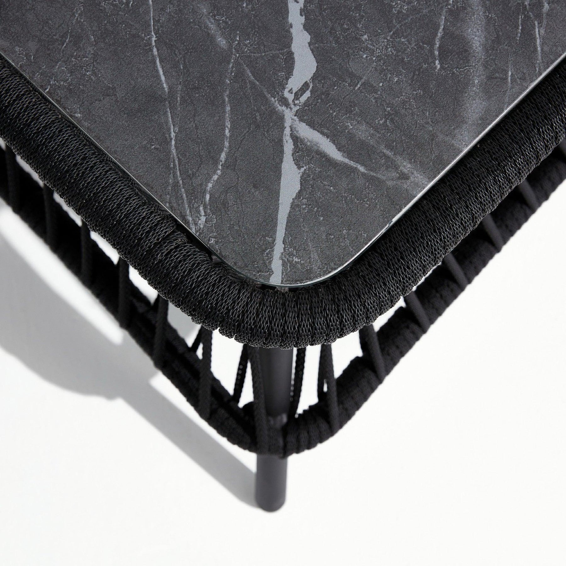 Café au lai, anyone? The Midway Coffee Table makes even the smallest of gestures an absolute joy. An aluminum foundation with an intricate pattern of black rope accents brilliantly contrasts sintered stone. The Midway Coffee Table is a wondrous addition to the Presidio Sofa. There's no finer way to enjoy family, friends and life—outdoors and indoors—than with this luxurious patio table.