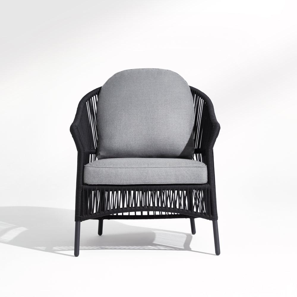 Call it a lounge chair or single sofa—it’s an absolute joy to sit back, relax and take in the great outdoors, or elevate your indoor setting, with the Lombard Lounge Chair. Feel the Wonder Collection difference with our specially blended four-layered acrylic fabric, designed for the ultimate in luxury and long life, treated to protect against sun fading, spills, weather and mold. Black textiline rope accents take an already elegant outdoor patio chair to the very next level.