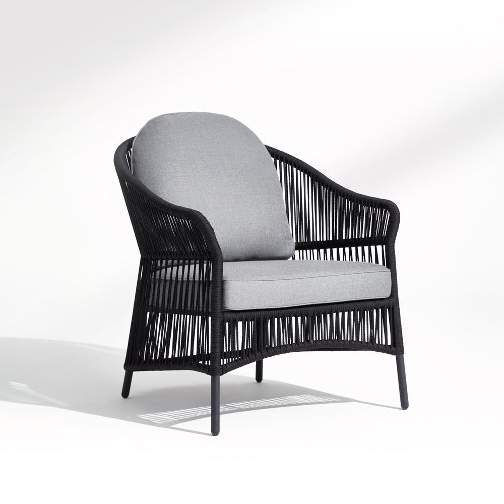 Call it a lounge chair or single sofa—it’s an absolute joy to sit back, relax and take in the great outdoors, or elevate your indoor setting, with the Lombard Lounge Chair. Feel the Wonder Collection difference with our specially blended four-layered acrylic fabric, designed for the ultimate in luxury and long life, treated to protect against sun fading, spills, weather and mold. Black textiline rope accents take an already elegant outdoor patio chair to the very next level.