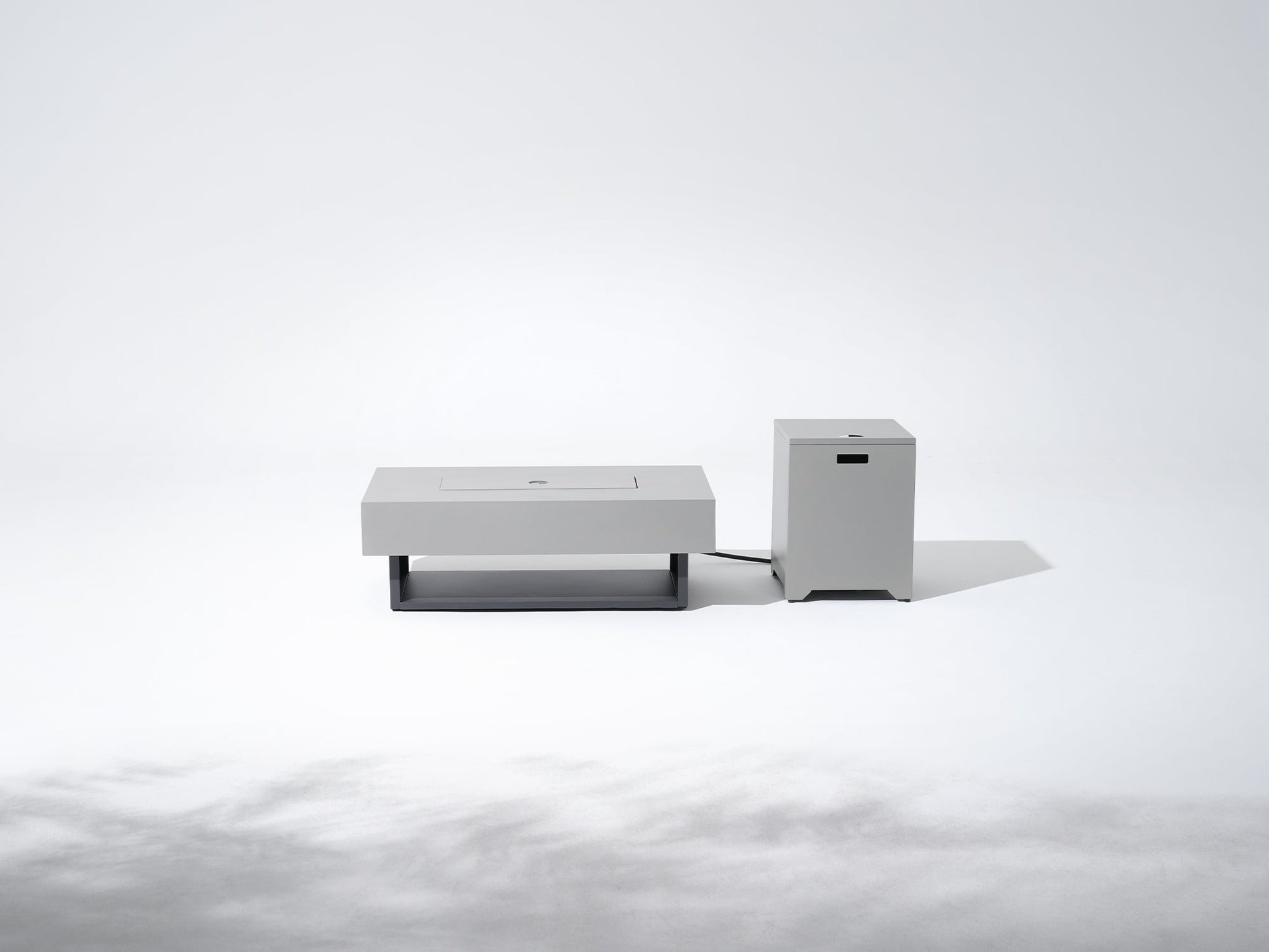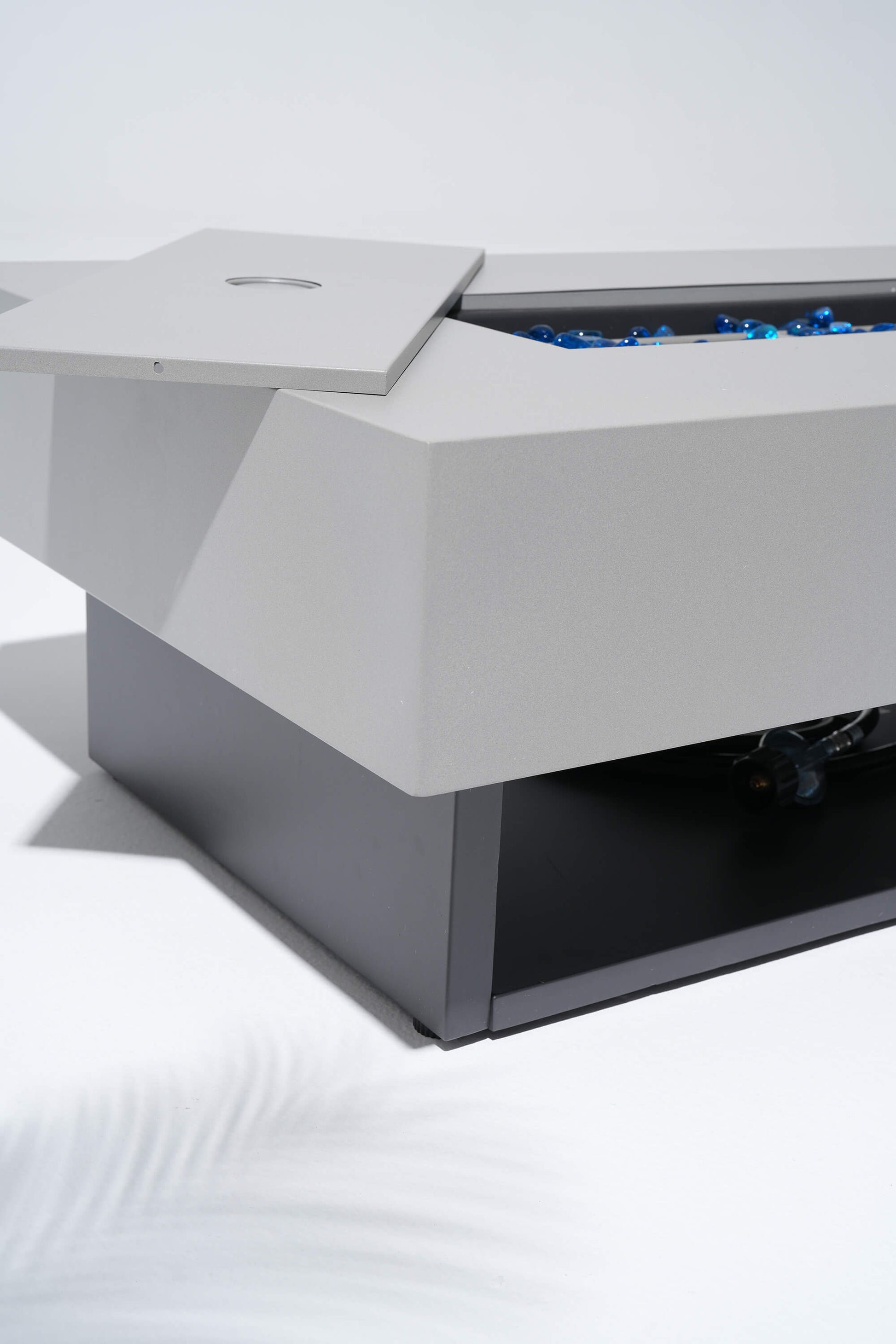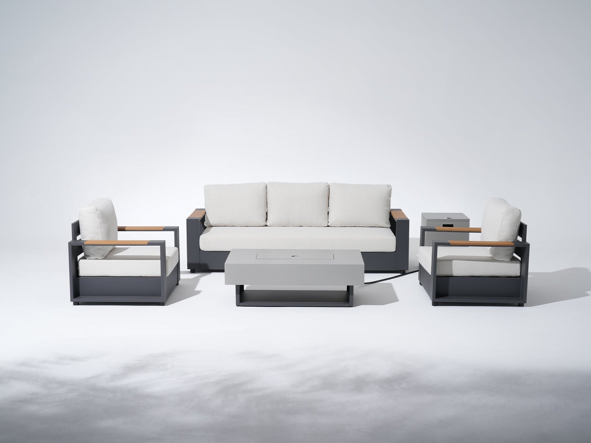 Addison Modern Metal Outdoor Sofa Set, Dark Grey Aluminum Frame, Grey Fire Pit