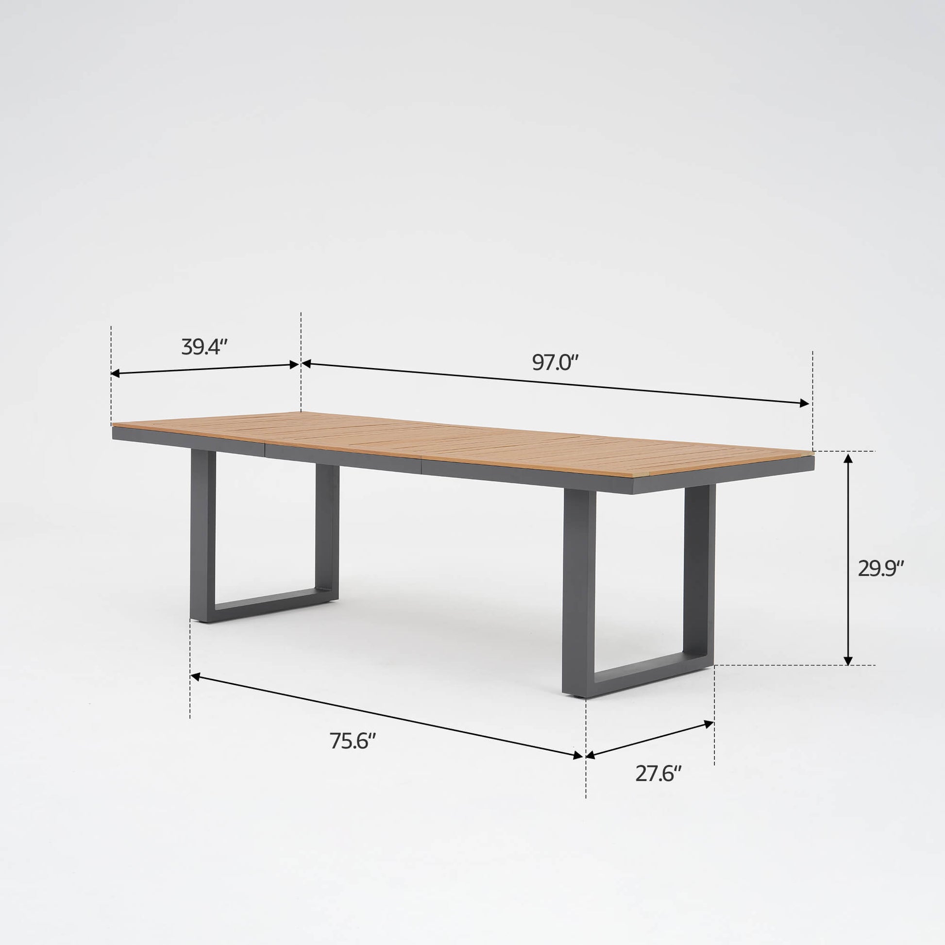 Addison Outdoor Aluminum Dining Set, Dark Grey Frame, Umbrella Hole, 6-8 Seats, 97''