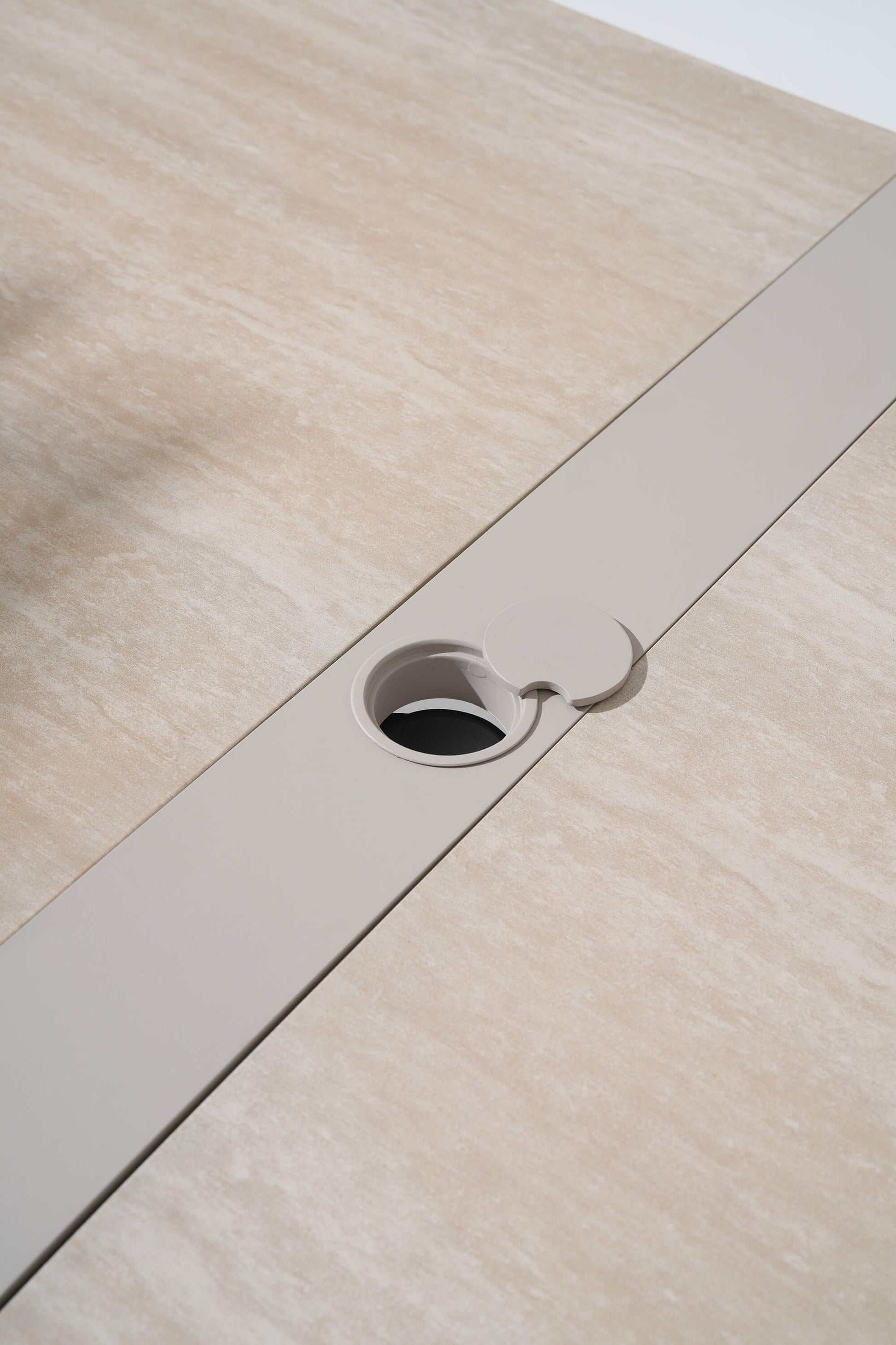 Addison Outdoor Aluminum Dining set, Light Beige Frame & Tempered Glass Tabletop, 6 Seats