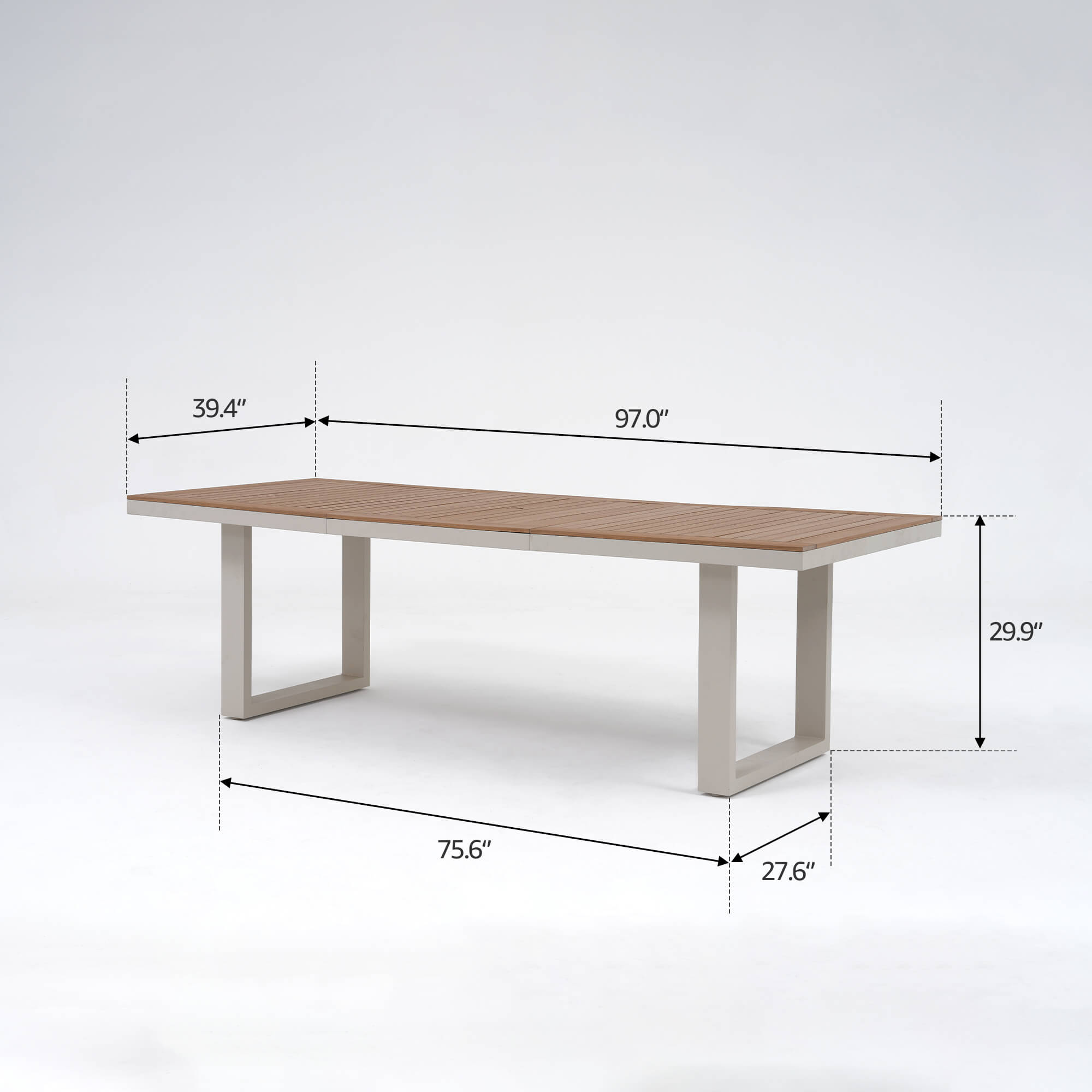 Addison Outdoor Aluminum Dining Set, Light Beige Frame, Umbrella Hole, 6-8 Seats, 97''