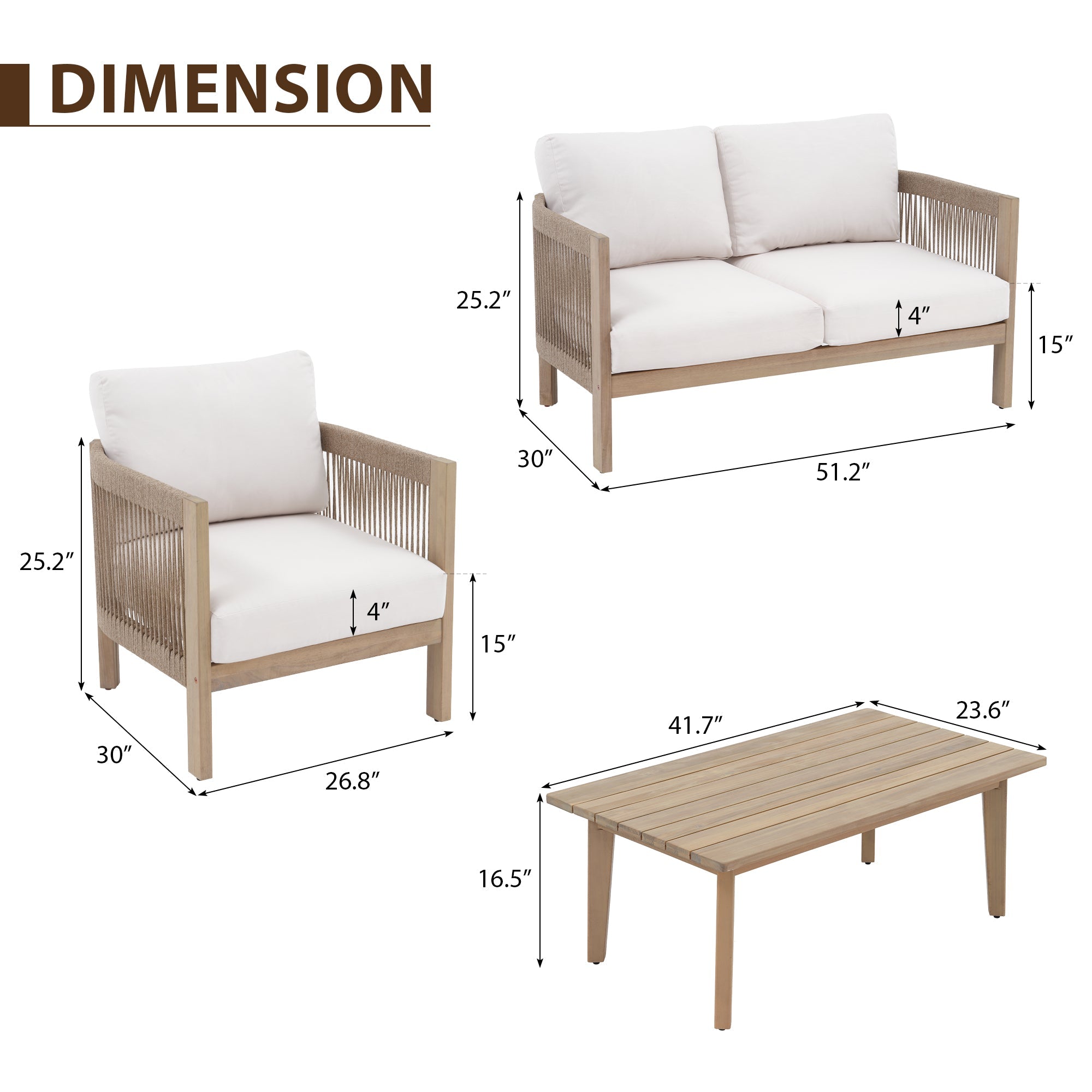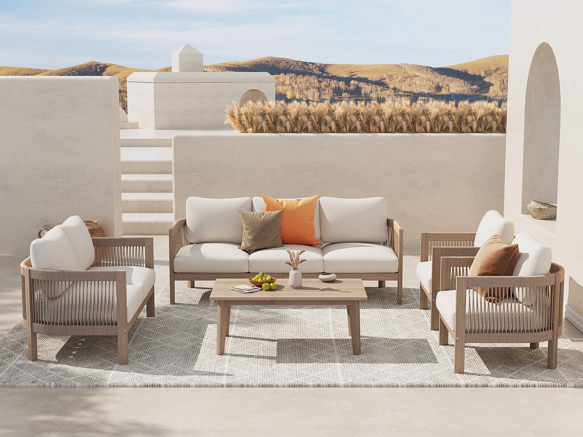 Foristern Wooden Outdoor Loveseat & Sofa Sets with Rope Design