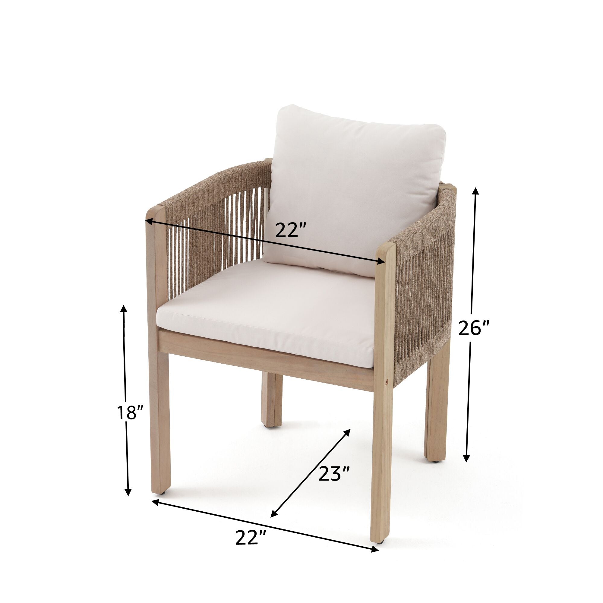 Foristern Wooden Patio Dining Chairs With Rope Weaving, White Cushions, Set of 2/4/6