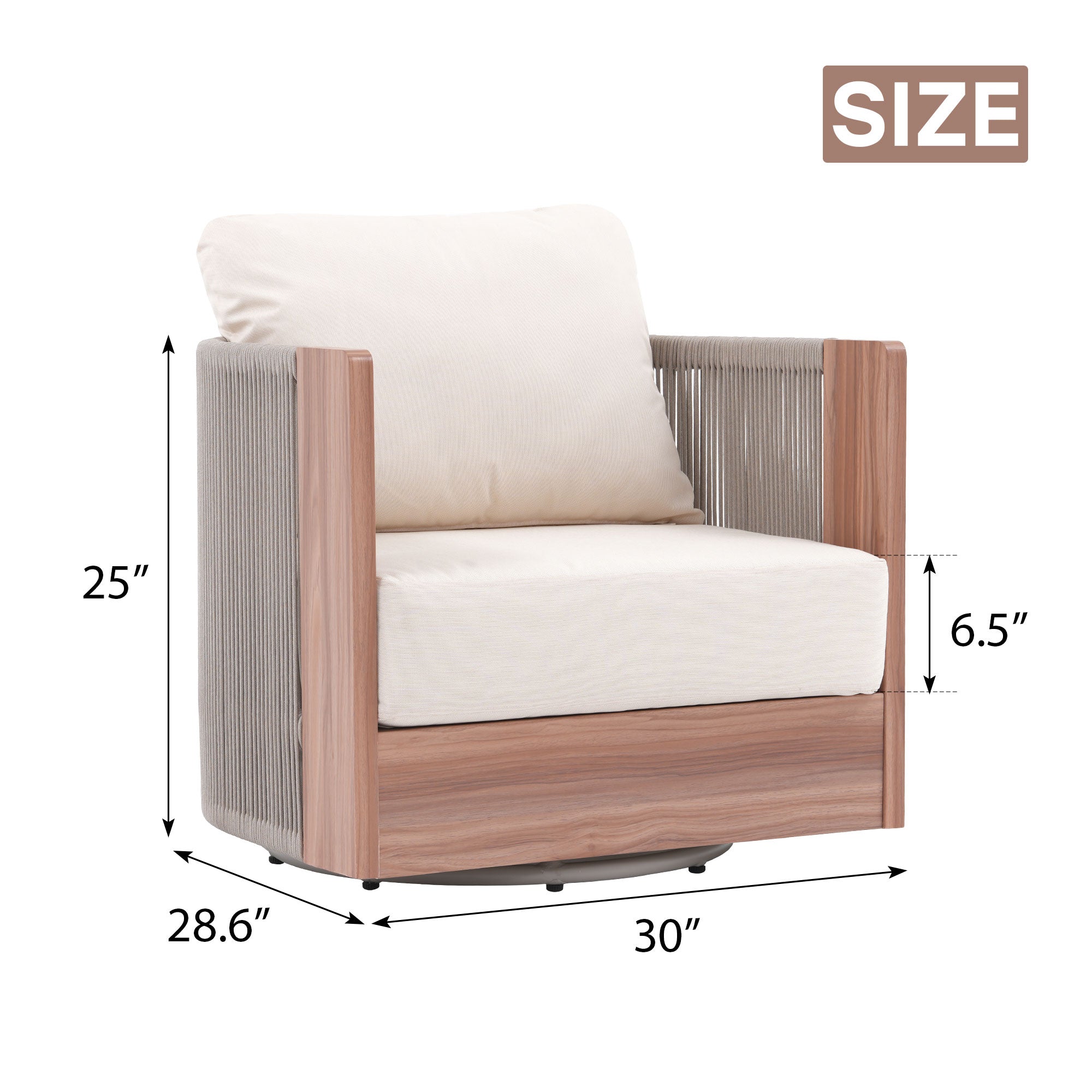 Irati Swivel Lounge chair & Loveseat , Rope Design, Aluminum Frame, 6.5” Thick Cushion