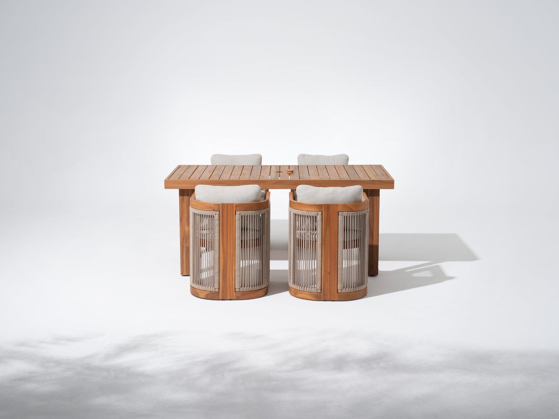 Mori Wood & Rope Outdoor Dining Set with Umbrella Hole for 4-6 People, 67''