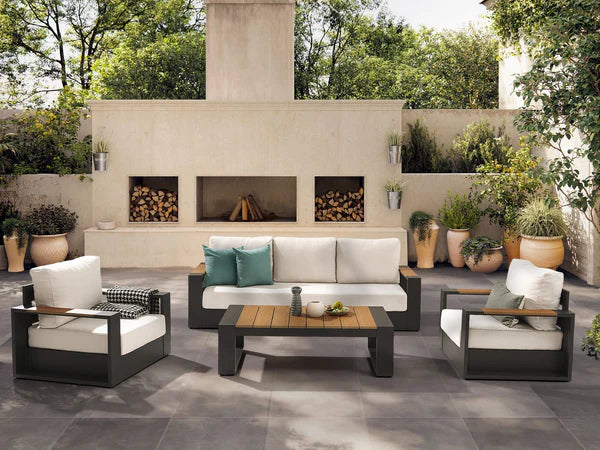 The 'Thalea' collection defines the essence of contemporary outdoor design. Crafted for sophisticated outdoor living, the Thalea 6-Seater Dining Set features a sleek 67" rectangular acacia wood table paired with minimalist chairs, blending the collection’s signature smoke-white palette with precision craftsmanship. The durable, weather-resistant design ensures timeless elegance while ergonomic cushions and clean lines create a harmonious setting for effortless entertaining.